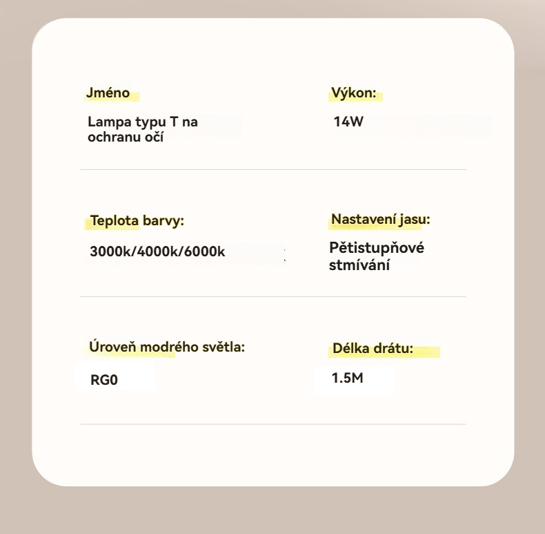 Stolní lampa pro péči o oči Stolní počítačová kancelářská lampa